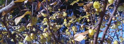 学校の「向山の森」では、蝋梅が今、咲き誇っています。