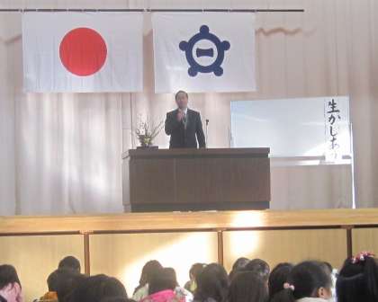 3学期の始業式が行われました。校長先生から「生け花が互いに生かしあっているように、向山小学校のみなさんもそれぞれに生かしあっているのです。3学期は、次の学年の準備の学期です。次の学年のすばらしいところをしっかり見て生かしてください。」というお話がありました。