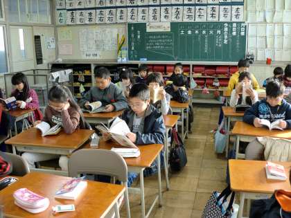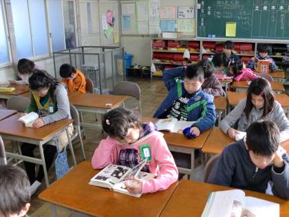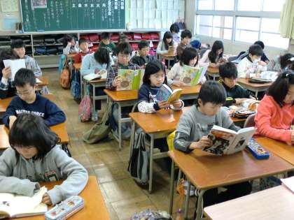 学校生活の朝のスタ−トは読書から始まります。落ち着いた時間をすごして一日が始ります。