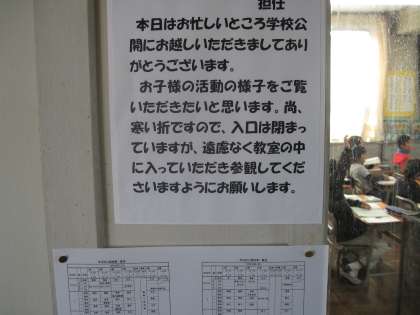 1.25 ただ今、学校公開中 公開日 2011/01/25 更新日 2011/01/25 学校ニュ−ス 本日と明日は、本年度最後の学校公開です。子どもたちの成長した姿を見ていただければと思います。皆様の参観をお待ちしております。