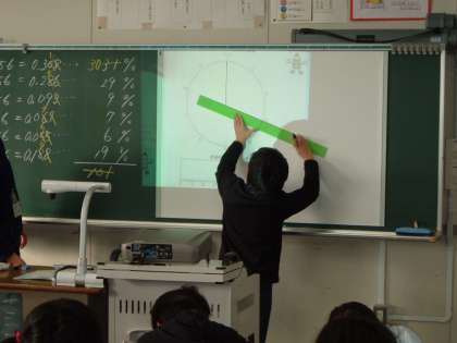 上:算数では、割合を帯グラフや円グラフで表しました。