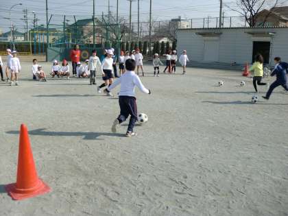 昨日までと違って、ポカポカ天気になりました。体育の時間も元気いっぱいに動き回って運動ができました。