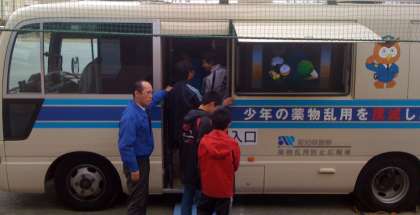 お話の後、キャラバンカーで実際の薬物等を見学しました。また、ビデオで薬物の怖さを学習しました。