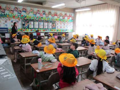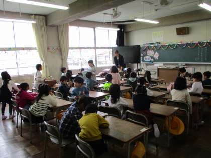 今日は初めて2〜6年生のお兄さん、お姉さんと対面しました。対面式では、大きな声で「よろしくお願いします!」とあいさつすることができました。教室での生活にも徐々に慣れてきています。