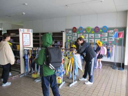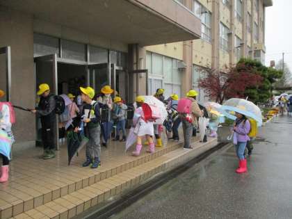 雨降る朝となりました。1年生の人たちも、高学年とともに足元を確かめながら歩き、かさを上手にたたんでいました。今朝は風もあり、かさをさし、歩いて登校するのはたいへんだったことでしょう。それでも、落ち着いて登校できたことに感心しました。みんな、「いいね!」です。