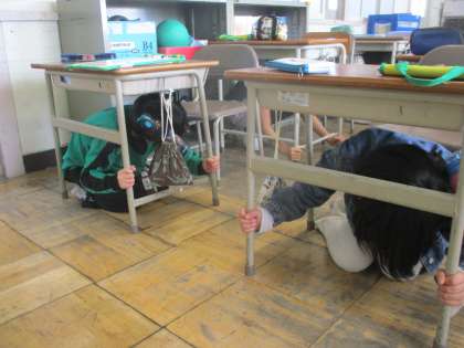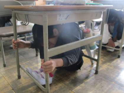 大地震を想定した避難訓練を行いました。自分たちの安全のみならず、1年生から3年生の手本となれるように取り組みました。