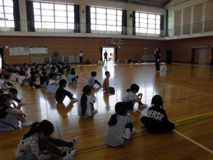 交通安全教室に参加しました。信号が青でも、車が来ていないかよく確認すること、手を大きく上げて横断することなどを学びました。これからの登下校に生かして、安全に歩けるといいですね。