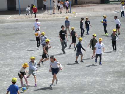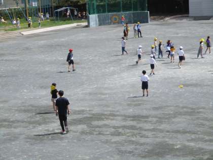 昼放課、子どもたちが外で元気よく遊んでいます。遊具やドッジボール、一輪車など思い思いに遊びの輪が広がっていました。外で体を動かすのが心地よい時期となりました。水分もとりつつ、元気よく過ごしてほしいと思います。