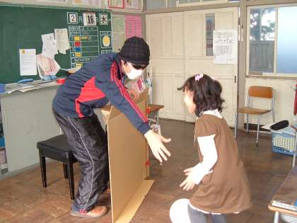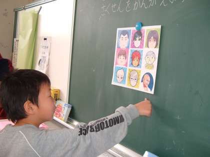 いろいろな顔の中から、悪い人は誰と考え、声をかけられた時やエレベーターに乗った時の対応について声の出し方や、逃げ方をやってみました。