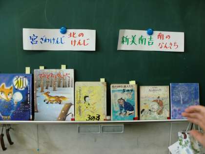 今日は国語で学習した「ごんぎつね」の作者の新美南吉の作品の招介を、司書さんからしてもらいました。作品を部分的に読んでもらい関心が高まりました。