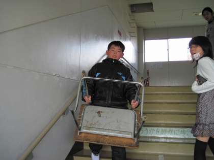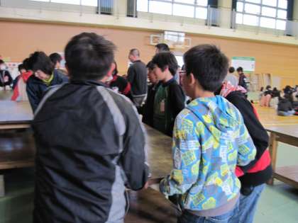 (中、下)卒業式の式場づくり 協力してテキパキと動き、短時間で準備をすることができました。