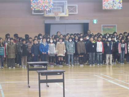 卒業式の歌の練習を5年生と合同で行いました。4年生は、最初緊張気味でしたが、次第に声も出てきてしっかり練習できました。