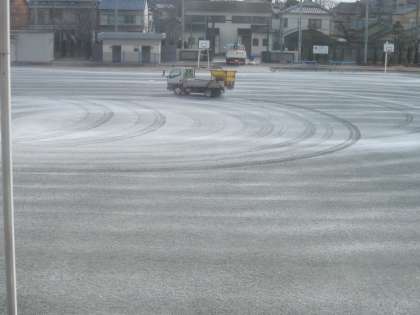 午後から運動場に防塵剤が散布されました。今日は運動場が使えません。