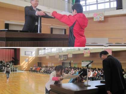 1・2限目に卒業式の予行練習を行いました。本番と同じように通して練習しました。明後日の卒業式では、6年生は卒業生として、4・5年生は在校生代表としてそれぞれに立派な姿を見せてくれると期待しています。