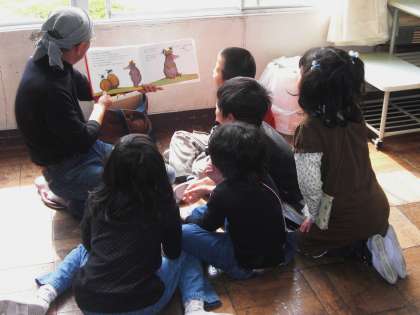 色を塗った絵が乾くまでの間、講師の先生が絵本の読み聞かせをしてくれました。
