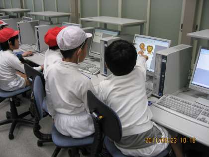 本日3年生最後のパソコン学習を行いました。ローマ字入力で打った文章の中に、絵や写真を取り込むことを学習しました。どの子もすばらしい作品が完成しました。