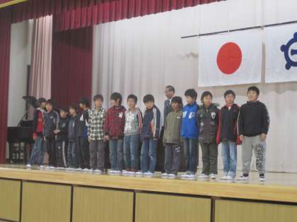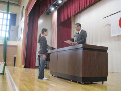 一つ目は、精勤賞です。今年度1日も休まなかった人は99名でした。精勤賞のみなさん、おめでとう!
