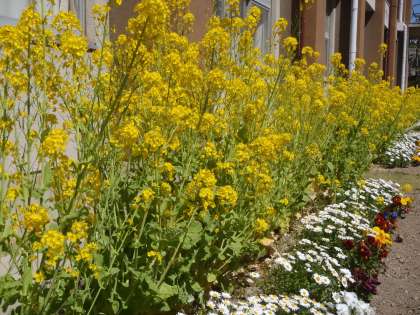 4.4 温かな日差しの中で 公開日 2011/04/04 更新日 2011/04/04 学校ニュ−ス 校庭の花壇では、菜の花が咲きほこっています。やわらかい黄色の花たちは、気持ち良さそうに春の風に揺られていました。