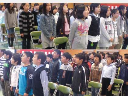 入学式では元気な声で校歌を歌い、1年生に聞かせました。