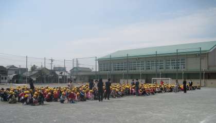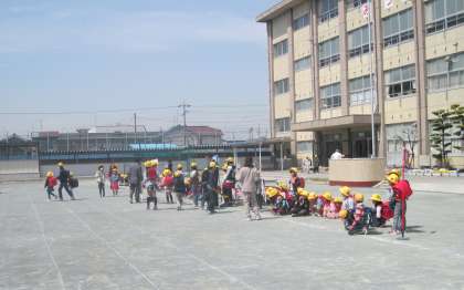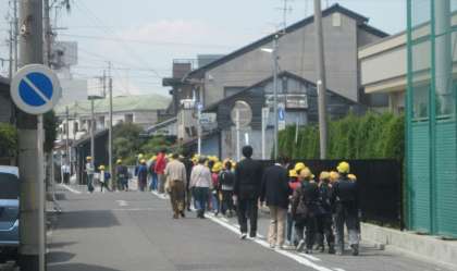 今日の下校は、最初の一斉下校でした。班長が新1年生を自分の班に連れて行き、どこに並ぶか教えました。