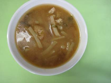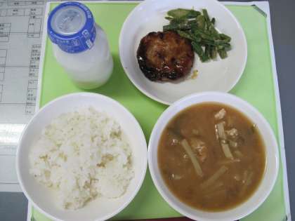 ごはん たまねぎのみそしる あいちバ−グのべっこうあんかけ