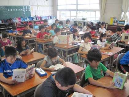 読書週間中の朝の読書です。担任による読み聞かせもあります。