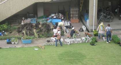 今日は学校支援ボランティアの方に来ていただきました。プランタに花を植えていただき、『希望の泉』の周りに並べていただきました。おかげで『希望の泉』の周りが美しくなりました。ボランティアの皆様、ありがとうございました。