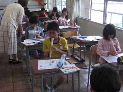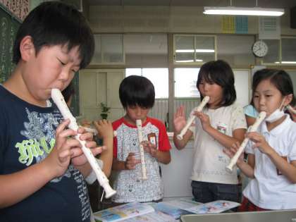 きれいな音が出るように、音楽の時間にリコーダーの練習をしています。