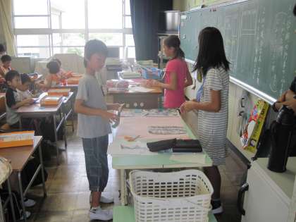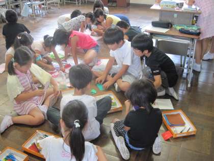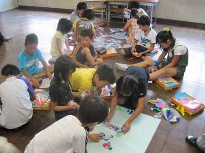 1限目に縦割り班振返りの会を行いました。班ごとに、1学期に行った縦割り班活動を振返り掲示物を作成しました。活動の様子を写した写真や作文をうまくレイアウトし、ビー紙に貼っていきました。できあがった掲示物は、3階の渡り廊下に掲示します。