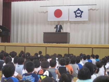 台風6号接近にともない、本日終業式を行いました。校長先生から、女子サッカーのワールドカップで日本チームが優勝した話がありました。その中で、日本チームから「チャレンジすることの大切さ」と「最後まであきらめない」ということが学べ、夏休みには夏休みにしかできないことにチャレンジしてほしい。そして、あの日本チームが最後にステキな笑顔を見せたように、たくさんの笑顔が見せられるような夏休みにしてくださいというお話でした。