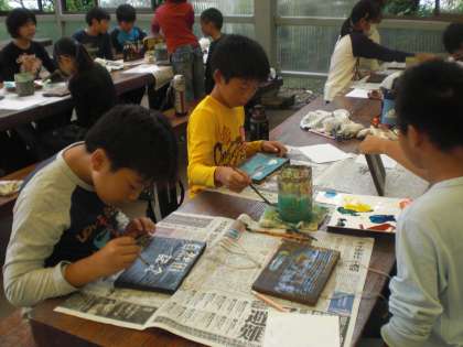 「焼き杉ボード工房」の体験活動です。