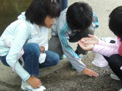 花や葉っぱなど、模様になる材料を自然園の中で集めます。