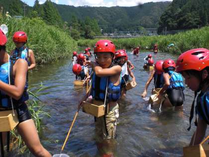 川遊びでは、長良川に生息している魚を捕まえる体験をしました。
