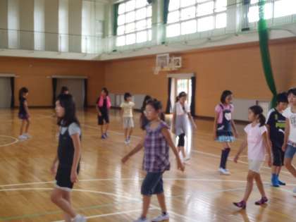 金管バンドの子どもたちは、秋の運動会に向けて、フォーメーションの練習をしています。どの子も、曲に合わせて、動けるようになってきました。