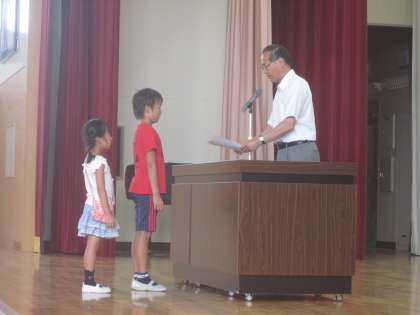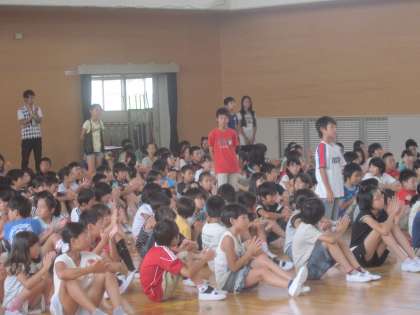 また、7月28日に行われた小学校水泳選手権大会に出場した選手のがんばりに、大きな拍手をおくりました。