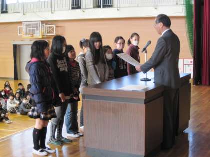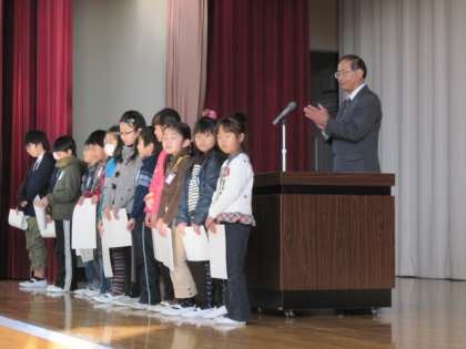 朝の児童朝礼で表彰伝達を行いました。