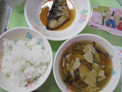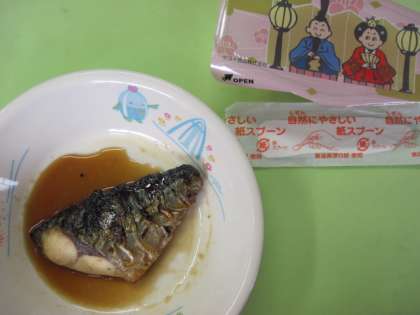 ごはん ゆばのすいもの さばのてりやき さんしょくゼリ− 牛乳