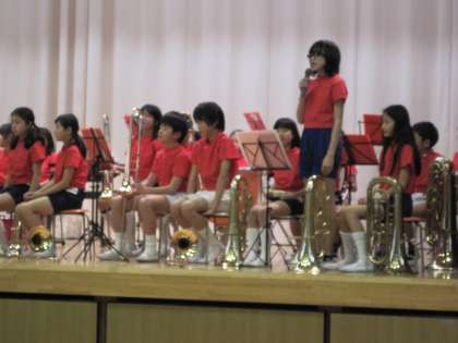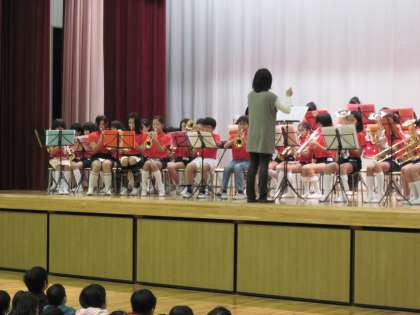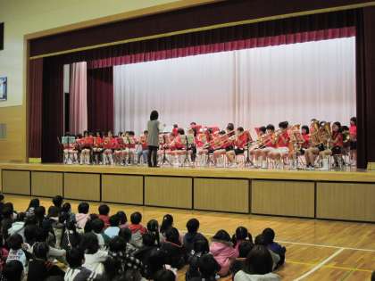 給食後、金管バンド部によるスプリングコンサートが行われました。楽器の紹介の後、演奏を聞きました。4〜6年生が一緒になって演奏するのもこれが最後です。最後にふさわしいコンサートでした。