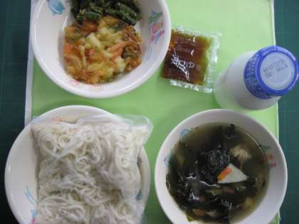 久しぶりのめんが出て、みんなうれしそうに食べていました。