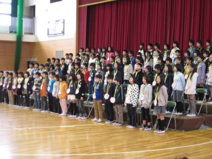 午後から、6年生を送る会を行いました。1年生から5年生がそれぞれに6年生への感謝の気持ちを込めて、歌やメッセージを贈りました。それに対して6年生も歌でお返しをしました。向山小学校が一つになったステキな時間でした。
