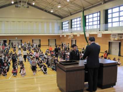 修了式の後、精勤賞の表彰伝達がありました。一年間休まずよくがんばりました。