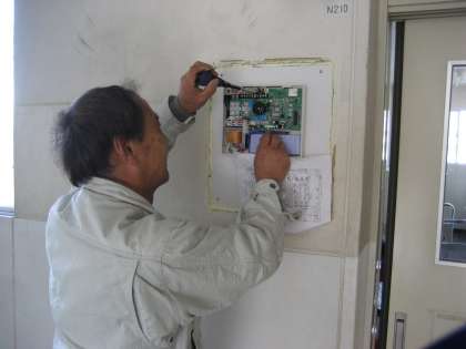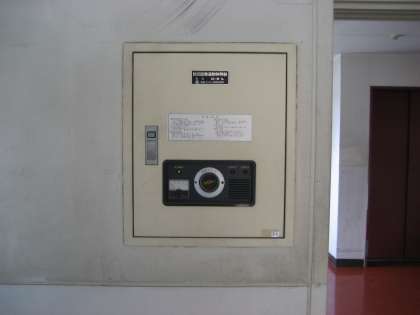 学校内の防火シャッターの点検を業者にしてもらいました。シャッターごとに制御盤がついており、その中にあるバッテリーをすべて交換してもらいました。また、北舎2階の東階段のシャッターには、新しい制御盤を取りつけてもらいました。このように防火に備えて点検を定期的に行っています。