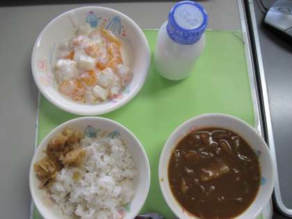 みんな大好きなカレ−が出て、大満足の給食でした。