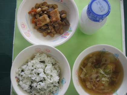 わかめごはん ちゃんこじる ごもくにまめ 牛乳