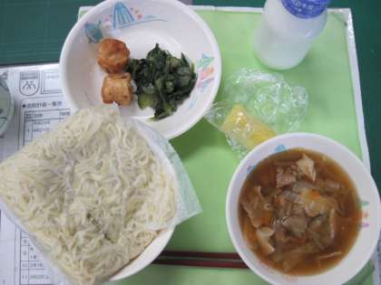 ラ−メンが出て、みんなツルツル楽しそうに食べていました。