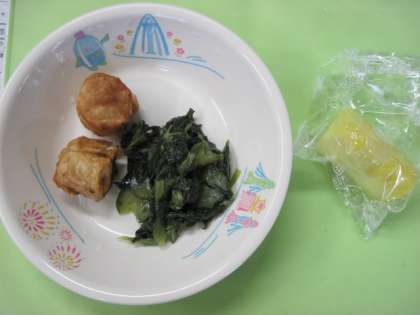ちゅうかめん 和風とんこつラ−メン あげシュ−マイ こまつなのナムル 牛乳