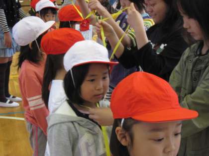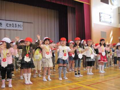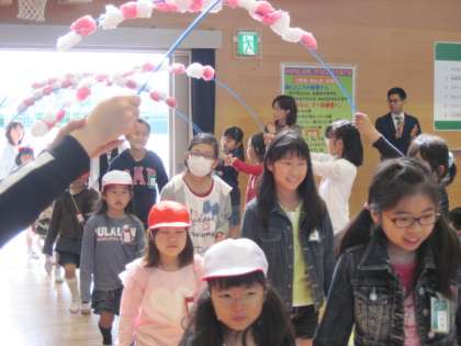 全校の児童が集い、一年生を迎える会を行いました。上級生たちの心あたたまるプレゼントをもらい、一年生は、とても喜んでいました。
