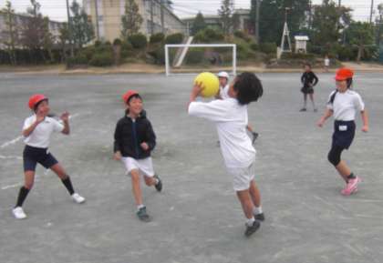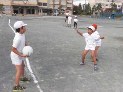 体育のポートボールの授業でチーム対抗戦を行いました。