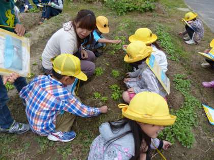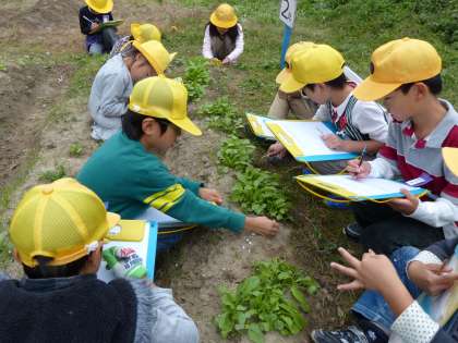学芸会に向けて日々練習に励み、一人一人の演技も上達しています。そんな中、畑の野菜たちもすくすく育っています。大根、白菜、キャベツ、ラディッシュです。どの野菜も同じような双葉が出ていたのに、本葉は少しずつ違っていることに子どもたちは気づきました。「早く収穫できるくらいに大きくなってほしいなぁ。」という声が聞こえてきました。