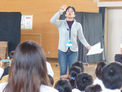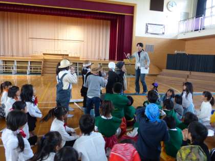 学芸会に向けて劇団の方に、立ち位置や登場の仕方を指導していただきました。
